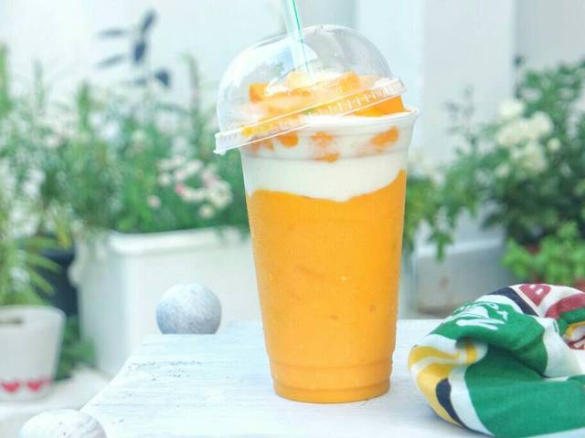 -Tambahkan yogurt atasnya,dan potongan buah mangga